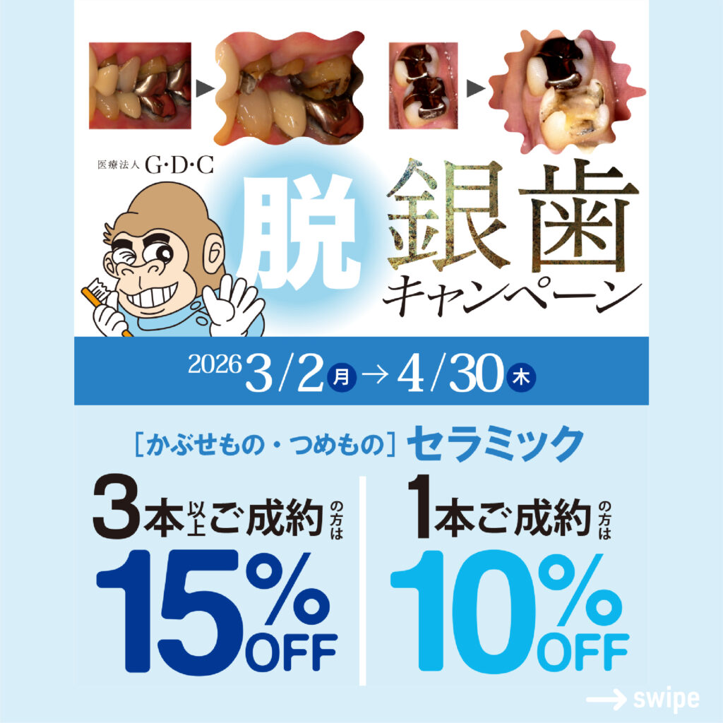 GDCでは【3/2〜4/30まで】セラミックがお得になる『脱銀歯キャンペーン』を開催中!🎉